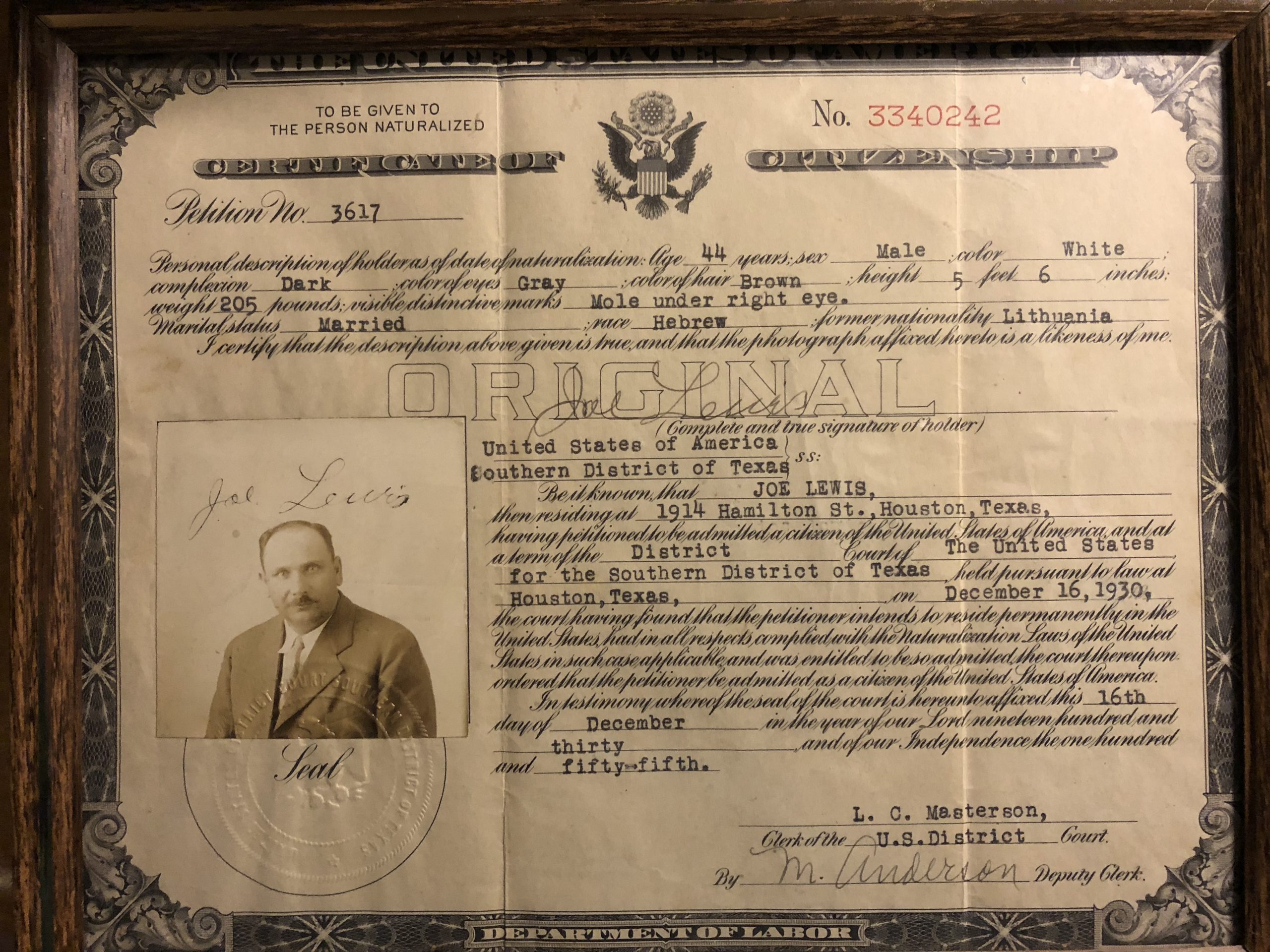 Each member of the Heyman Family immigrated to the United States from Lithuania. Lena, the oldest and my grandmother, was the last to leave. While all of her siblings and parents went through Ellis Island and settled in Elmira, New York, Lena traveled from Bremen, Germany, to Galveston, Texas, where she was reunited with her husband Joe and settled in Houston.